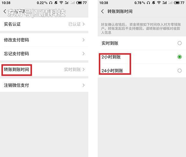 2、在錢包頁面的右上角點擊三個小點,進(jìn)入到支付管理頁面,在頁面上點擊【轉(zhuǎn)賬到賬時間】,進(jìn)入后會發(fā)現(xiàn),微信都是默認(rèn)的實時到賬,將它設(shè)置為2小時或者24小時到賬。