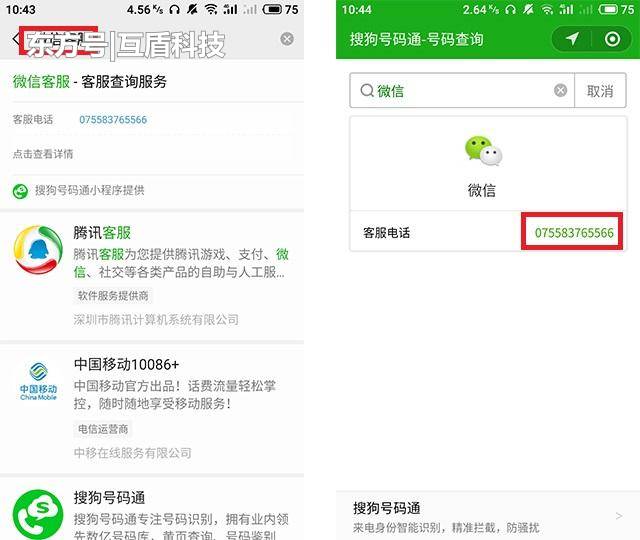 5、在搜索框中輸入【微信客服】,點擊搜索即可,搜索出的結(jié)果中,將會顯示客服電話,我們點擊撥打客服熱線,說明原因,尋求幫助,與對方進(jìn)行溝通。