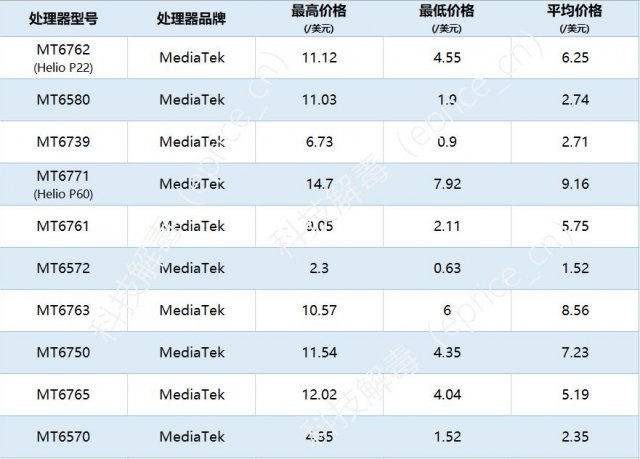 相比高通移動平臺,聯(lián)發(fā)科的定價簡直“白菜價”,其中聯(lián)發(fā)科Helio P60是目前平均價格最高的處理器,平均價格為9.16美元(約合人民幣62元),這比驍龍660還要便宜。
