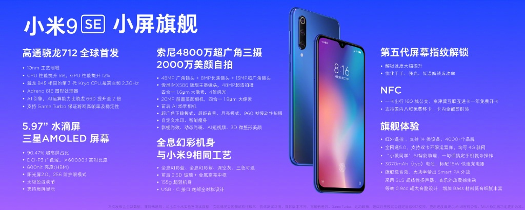 小米9 SE正式發布:驍龍712處理器+5.97吋水滴屏 售價1999元起