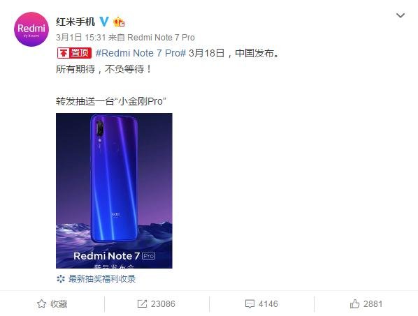 紅米在今年1月份發布了品牌獨立后的首款產品——紅米Note 7,同時還宣布還會有紅米Note 7 Pro手機,將在年后發布。而在2月28日,紅米在印度召開發布會,發布紅米Note 7 Pro,就在我們可惜不在國內發布的同時,紅米手機官方微博在3月1日宣布,紅米將在3月18日下午兩點在北京舉行新品發布會,正式發布紅米Note 7 Pro。