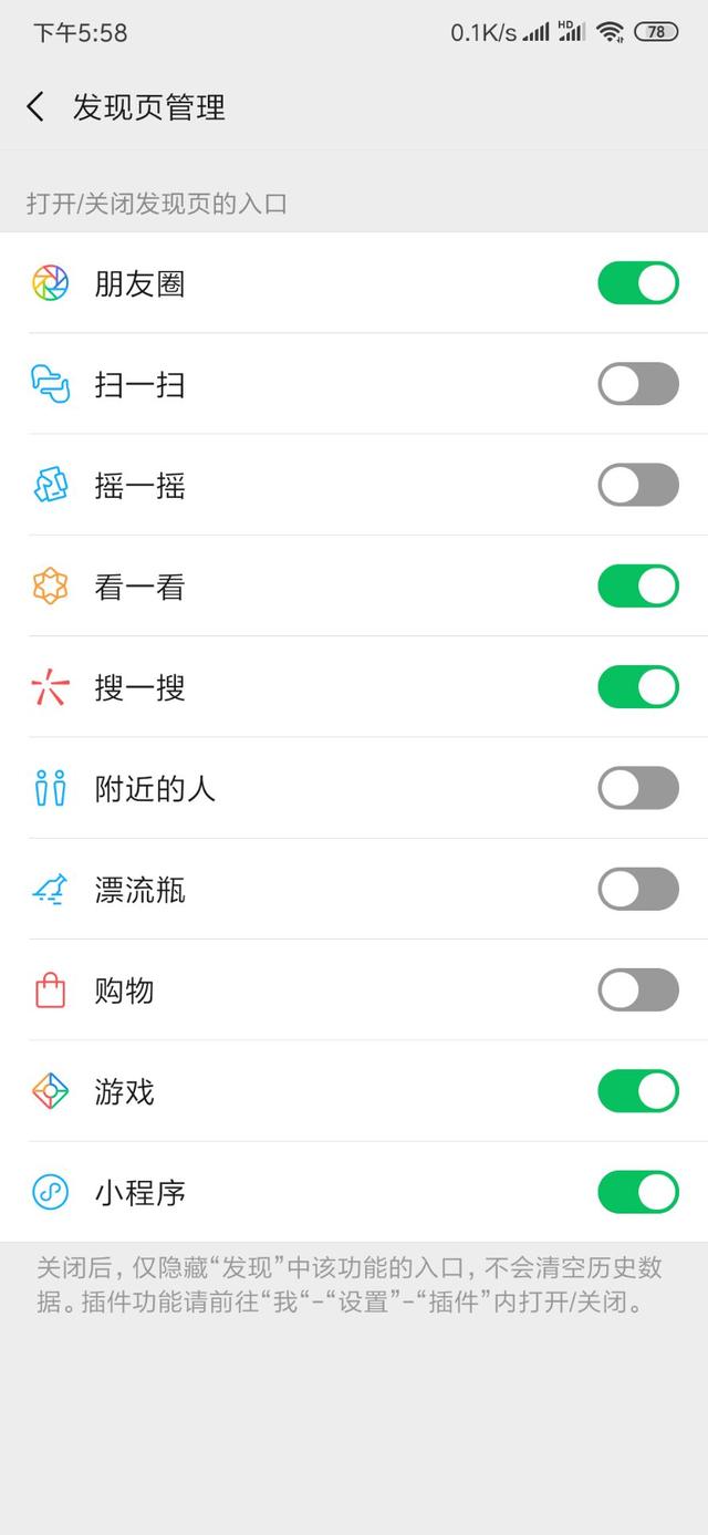 這項輔助功能需要打開定位,向其他用戶信息發送信息,也接受其信息,所以這項功能非常占空間,在"發現頁管理"選項中直接選擇停用。