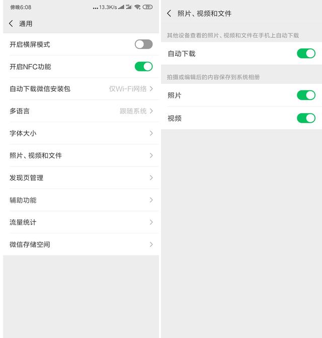 此項功能會將我們所看到的圖片或者視頻直接下載到微信文件里。這項功能可以通過"設置—通用—照片、視頻和文件"關閉。對那些沒興趣卻常推圖文的公眾號,可以直接取關。
