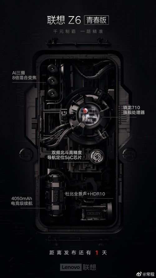 聯(lián)想Z6青春版明日發(fā)布:搭載高通驍龍710處理器+后置三攝
