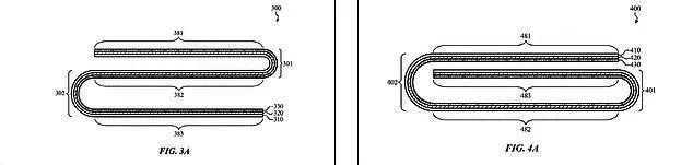 圖注:如上圖所示,該公司提交的一項專利顯示了一種可進行雙折疊的屏幕,既可以像折成“S”形,也可從兩端向內折疊成“G”形