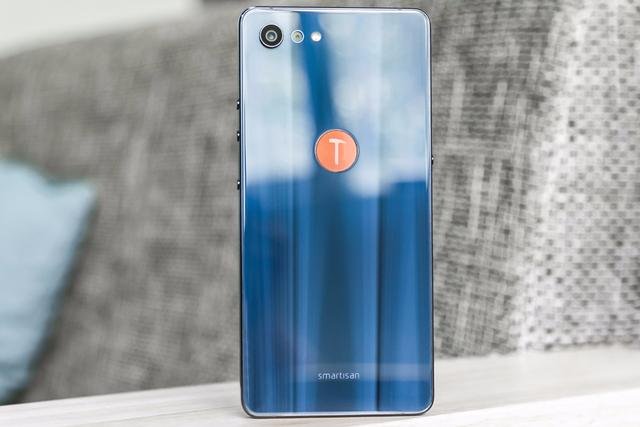 其實堅果Pro 2s的工業(yè)設(shè)計還是有著高水平的,機(jī)身后方采用特殊的副攝像頭隱藏式開孔,并且將LOGO與后置指紋模塊融合,配合特殊的鍍膜整機(jī)顏值絕對足夠。