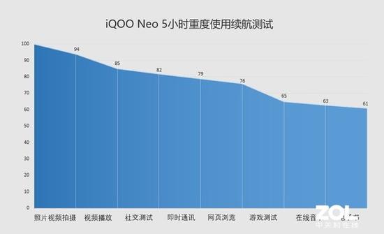 經(jīng)過5小時的重度使用續(xù)航測試后,電量還剩余61%,即使是手機重度使用用戶,iQOO Neo也能滿足一天的使用需求。不僅是超大電池,iQOO Neo還配有AI智能省電優(yōu)化技術,針對不同的使用場景,可以匹配更加智能的電源管理方案,讓大電池續(xù)航更加持久。