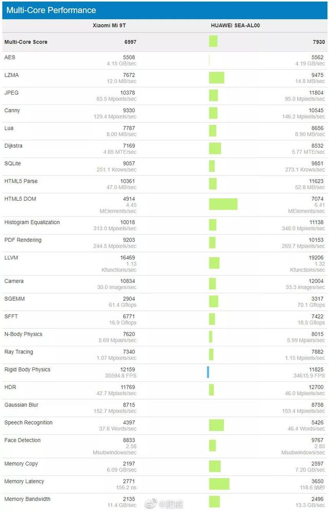 本次的AI性能是麒麟810最重要的賣點,因而該項數據也是最優數據,跑分高達3.2w,麒麟810 采用了華為自主研發的“達芬奇”架構,這個方面來說確實值得期待。