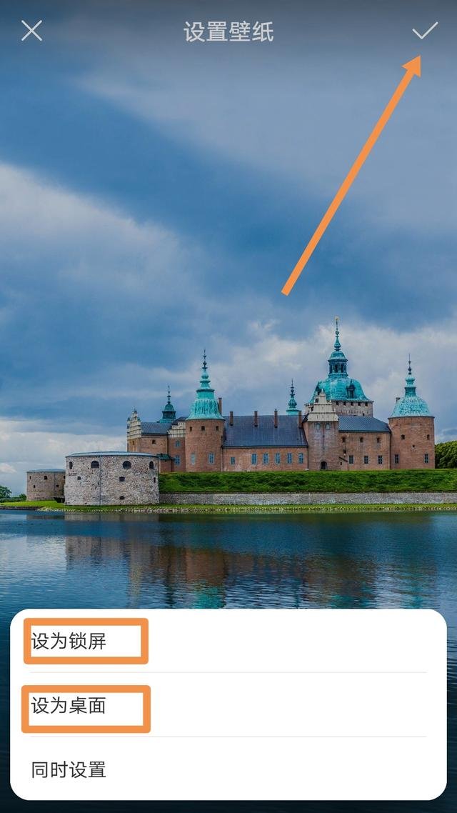 然后打勾,會出現(xiàn):【設(shè)置為鎖屏】【設(shè)置為桌面】和【同時(shí)設(shè)定】,鎖屏?xí)r鎖住屏幕時(shí)候顯示的,桌面是解鎖后桌面背景,可以根據(jù)需要設(shè)置。