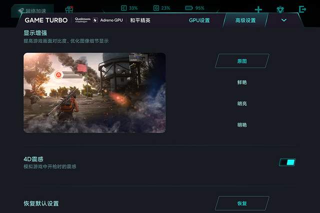 而在高通的支持下,現在游戲加速模式里的GPU性能以及游戲畫質都是可以進行系統級增強的,不會因為個別游戲開發商不開放某些選項而受影響。