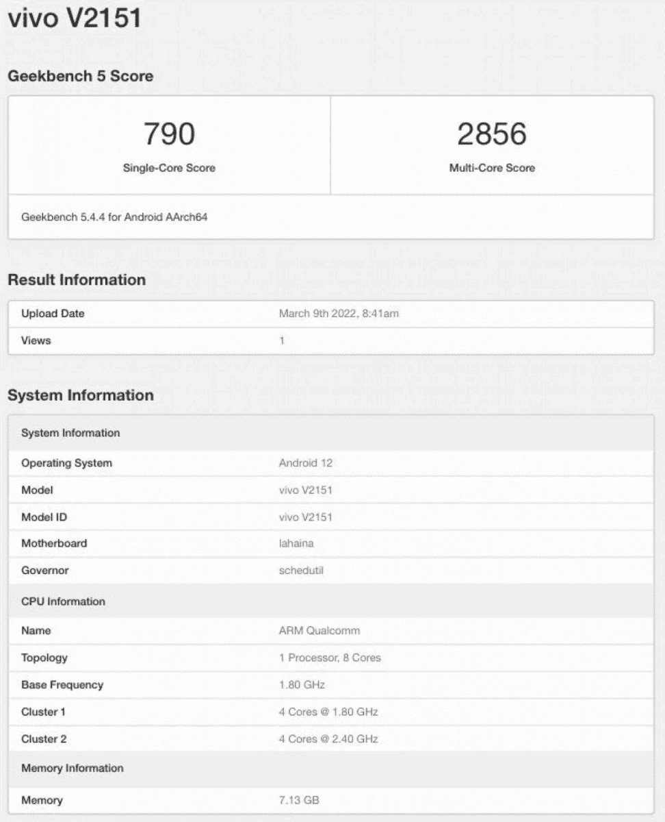 vivo T1 Pro 5G跑分曝光:配備8GB內(nèi)存,多核測(cè)試2859分