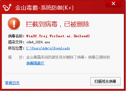圖4 金山毒霸K+系統防御可攔截“變形金剛”病毒