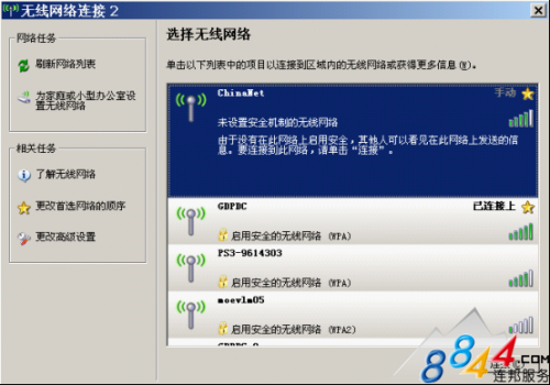 l步驟三:進入“無線網絡連接”對話框,選擇“刷新網絡列表”,查看本區域內可用的無線網絡列表。