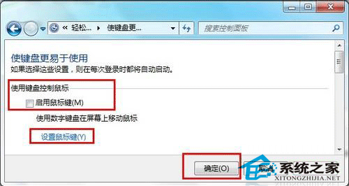 啟用鼠標鍵就是用用鍵盤來控制鼠標的移動,在Windows7系統中這個選項在控制面板的輕松訪問中心--使鍵盤更易于使用中,下面是圖文說明: