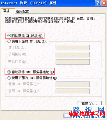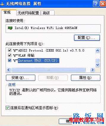 4)選擇無線網(wǎng)絡(luò)連接的“TCP/IP屬性 ”,并將其IP地址和DNS改為自動(dòng)獲取。