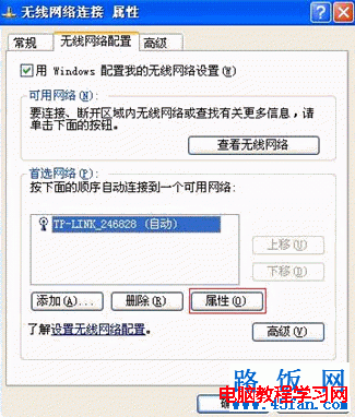 3)單擊屬性 按鈕,進(jìn)入無線網(wǎng)絡(luò)連接屬性 界面。