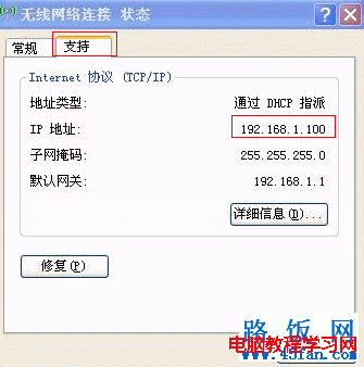 三、此時(shí)查看無線連接是否獲取到了IP地址,如下圖,連接成功后動(dòng)態(tài)獲取到一個(gè)IP地址