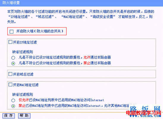 四、檢查路由器防火墻中過濾規(guī)則是否過濾了該無線網(wǎng)卡。如果設(shè)置了過濾規(guī)則,則建議先將防火墻開關(guān)關(guān)