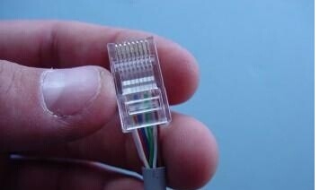 交叉線接法即一端是 568A 標準, 另一端是 568B 標準。 做水晶頭時,使水晶頭的彈片朝外,入線口朝下,從左到右,遵循上面的線序,充分插入線(以在水晶頭的頂部看到雙絞線的銅心為標準),然后用壓線鉗夾緊就成功了。