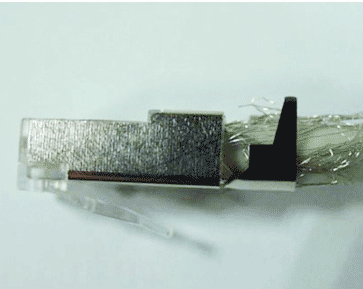 第十六步、將固定扣的兩端略往內扳,并確定隔離層或地線有充分接觸