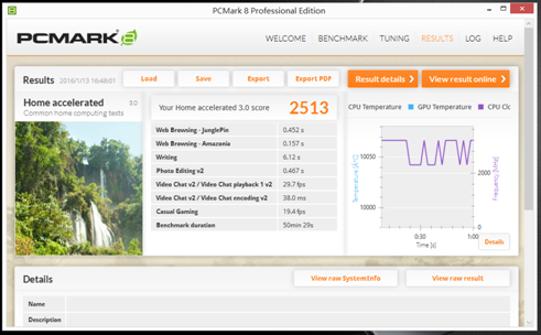 PCMark 8的測試中,HOME的測試成績?yōu)?513分,這樣的分?jǐn)?shù)也非常不錯,相比于同級產(chǎn)品有很大的優(yōu)勢,電腦整體性能不錯。