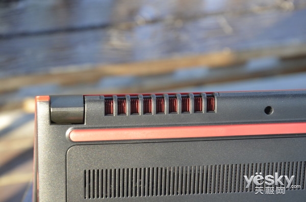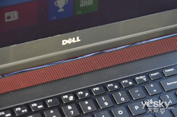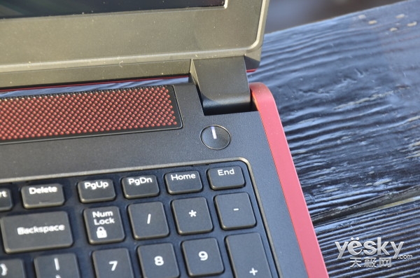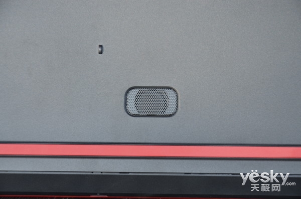 在戴爾游匣7000的B面正上方分布著一條紅黑相間的音響,搭配上小編前面介紹過的D面低音炮,在音質方面該機絕對可以呈現出震撼品質。