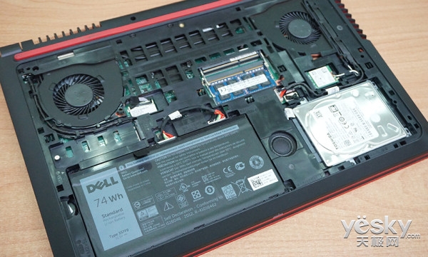 戴爾游匣7000游戲本拆解時(shí),是最容易的。僅僅一個(gè)螺絲釘就可以拆下后殼,這樣的設(shè)計(jì)對(duì)于玩家來(lái)講,更換硬盤的增加內(nèi)存時(shí)很方便。