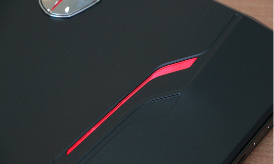 在四款游戲本的A面中,小編認為雷神是其中最符合游戲本定位的一款。它除了特色的楔形跑車設計之外還擁有兩條別具一格的紅色呼吸燈,棱角分明的外形立體感十足、而在燈光昏暗的地方則更為耀眼。