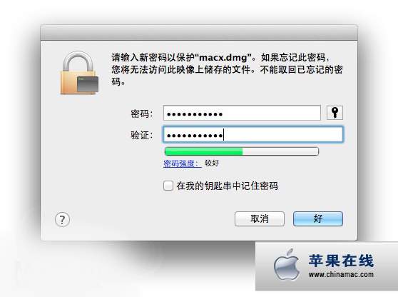 5、設置密碼,記得把下面在鑰匙串記住密碼的對號去掉