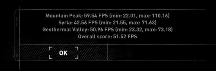 在中等畫質的測試中,平均幀數為 51.52 FPS。