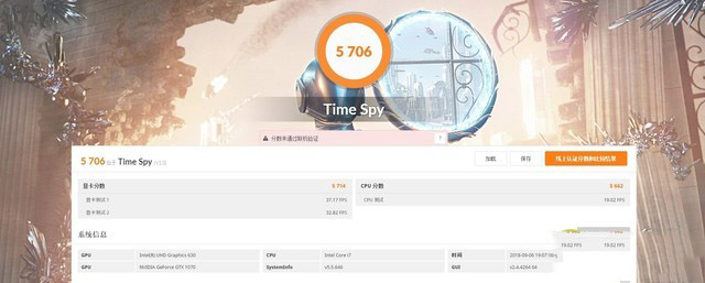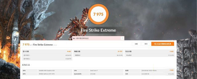 而在3DMARK中,GP63在Time Spy中得分為5706分,Fire Strike Extreme得分7975分,看來這塊1070顯卡給整體加分不少,表現不錯。