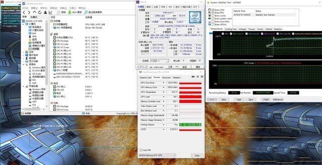 接下來就是我比較擔心的散熱環節了。雖然GP63具有雙風扇、7熱管和4出風口的強勁配置,但是i7-8750H和GeForce 1070的發熱量也不是蓋的。