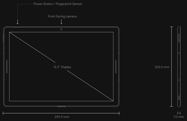Google Pixel Slate采用了鋁質機身,深藍配色,厚度僅7毫米,重量約725克。一塊12.3寸的觸摸屏,分辨率3000×2000(像素密度293PPI) ,亮度最大400nit,色域覆蓋72% NTSC。