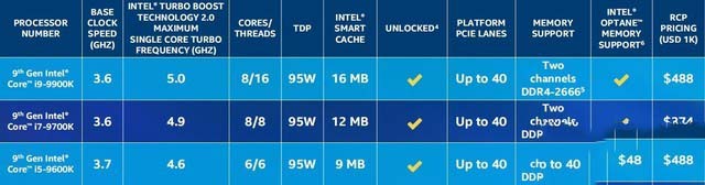 英特爾第九代酷睿依舊采用14nm++制程工藝,不過與以往不同的是,本次九代酷睿每一個(gè)核心都能夠訪問使用三級(jí)緩存。如酷睿i9 9900K的8個(gè)核心均可以訪問使用16MB智能緩存,使得CPU緩存延遲大大降低,性能得到提升。