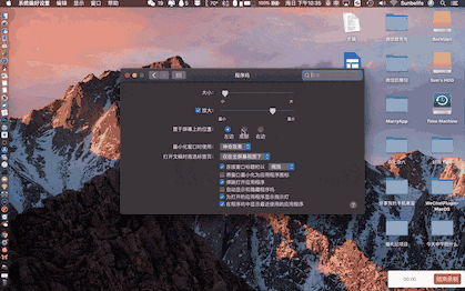 在「偏好設置 - 程序塢」中除了調整圖標大小之外,還能把程序塢的位置放在屏幕左或右側,亦或開啟自動顯示或隱藏,最大化利用屏幕空間。