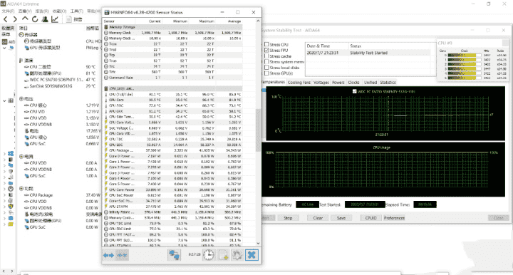 系統(tǒng)穩(wěn)定性方面,我們通過AIDA64進行拷機測試。在測試運行15分鐘后,Ryzen 5 4600U的平均溫度為85°C,此時CPU的功耗在37W左右,全部六顆核心均維持在3.4GHz的頻率下運行,溫度控制與性能表現(xiàn)都令人滿意。