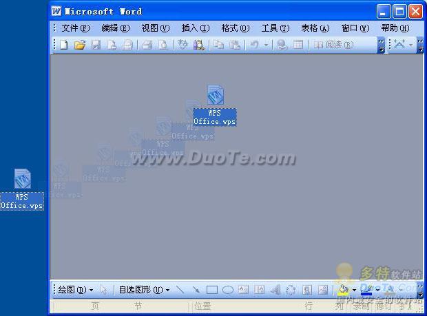直接拖動(dòng)wps格式的文件到MS Office的編輯區(qū)域(此時(shí)要先關(guān)閉所有文檔,以免將WPS文檔當(dāng)作OLE對象插入到原有文檔中了),MS Office就可以將其打開了,如下圖所示: