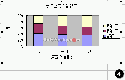 練習(xí):請參考前面的步驟,使用柱形圖的“百分比柱形圖”子類型創(chuàng)建如圖4所示的圖表。