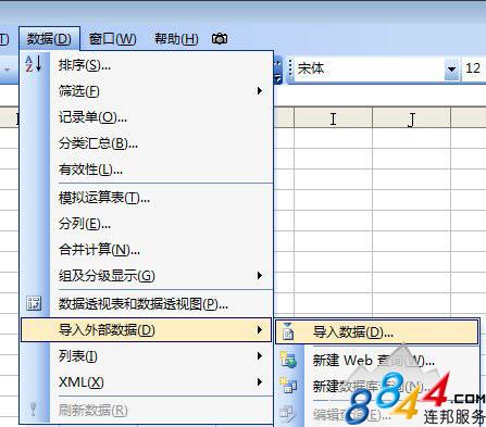 2、然后打開(kāi)Excel,新建一個(gè)空白表格;單擊菜單上的“數(shù)據(jù)”-->導(dǎo)入外部數(shù)據(jù)-->導(dǎo)入數(shù)據(jù);