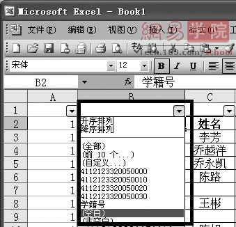 小提示:之所以在操作之初要插入一個空行,一是為了避免刪除第一行數據。二是當工作表有標題行時,只有這樣選擇“自動篩選”命令后才會出現下拉列表框。