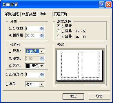 由于試卷的大小、上下邊距、左右邊距、密封線寬度在不同的學校、不同的地區、不同的考試中都有不同的標準,在此我們以設定試卷的大小為:寬度420mm、高度為280mm。上下邊距為30,左邊距為50(包括裝訂線)、右邊距為 30。試卷內容分兩欄排版,其欄間距為30mm。
