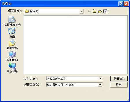 如圖10所示,雙擊“自定義”目錄,在文件名框中輸入模板的名稱,例如“試卷280-420”,點擊“保存”按鈕,這樣,剛才的文件就保存為模板了。