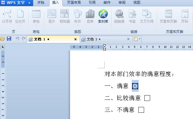 說做就做,先打開WPS文字2012,待將要進行問詢的內容輸入完成后,將光標定位到要進行選擇的答案后面,在菜單欄中單擊“插入”選項卡,然后在“窗體”功能區中單擊“復選框型窗體域”按鈕(如圖1),待插入完成后再單擊“窗體域底紋”命令將窗體域底紋取消,最后單擊“保護窗體域”按鈕。這樣,當我們用鼠標點擊復選框時,即可在選中、未選中狀態中切換了(如圖2)。