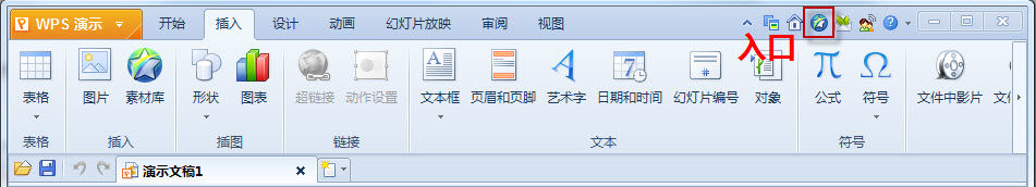 1.啟動WPS文字/表格/演示,2012界面下,單擊插入選項卡下“素材庫”圖標