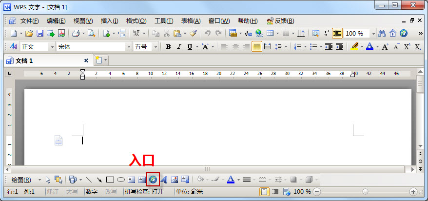 5.啟動WPS文字/表格/演示,經典界面下,單擊繪圖工具欄“素材庫”圖標