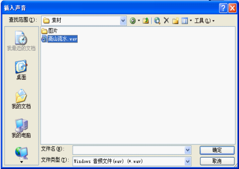 瀏覽并選中你需要插入的mp3文件,點(diǎn)打開,彈出如圖所示內(nèi)容: