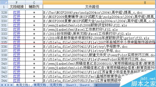 在Excel中經(jīng)過上述的簡單操作之后,我們很快就能獲取指定分區(qū)的文檔目錄,所有文檔名稱都按指定的關(guān)鍵字有序排列,查找起來比較方便;每一個(gè)文檔名稱后面都包含訪問鏈接,打開也很迅速。