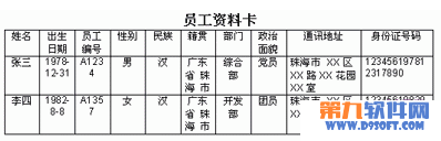 當人事部門收到員工填寫的資料卡后,人事管理員只需要將文檔進行簡單地整理,再利用表格工具進行轉換,即可得到下面的數據表結果,如圖 2所示。