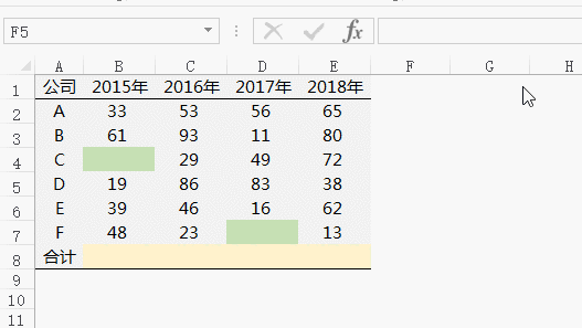特別注意:如果對含空單元格的單表設置求和公式時,千萬不要選下面的求和行按Alt + =,因為這樣設置公式是錯誤的:
