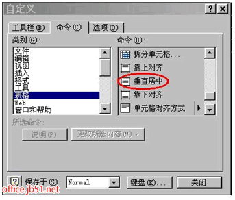 工具-自定義-命令-表格-將“垂直居中”拖到快捷工具欄“水平居中”旁邊-關閉。